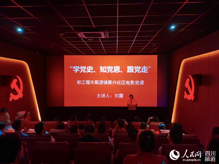 9日下午4時,這所“鄉(xiāng)村電影黨?!闭介_課,聚源鎮(zhèn)聚興社區(qū)黨支部書記劉霞為社區(qū)黨員群眾上了第一堂電影黨課。以后,聚源鎮(zhèn)黨委、聚源鎮(zhèn)19個村和社區(qū)的黨支部,將陸續(xù)在這里開展主題黨日活動。