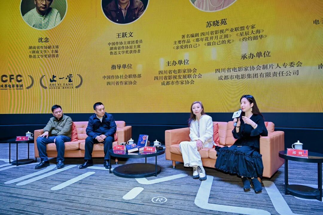 12月29日19:00,“跟著‘大家’看電影”項目第三期活動在成都新明電影院5號廳如期舉行,豪華的嘉賓陣容吸引了約200名觀眾參與這場文學與影視融合的文化盛宴。本次活動由中國作協(xié)主席團委員、湖南省作協(xié)原主席、魯迅文學獎得主王躍文擔任主講嘉賓。同樣是魯迅文學獎得主,湖南省作協(xié)副主席、《湖南文學》主編沈念;擁有《那年花開月正圓》《星辰大海》《做自己的光》《灼灼韶華》等作品的著名編劇蘇曉苑擔任對談嘉賓。青年評論家、成都電子科技大學文學院副教授、文學博士邱田擔任學術(shù)主持。